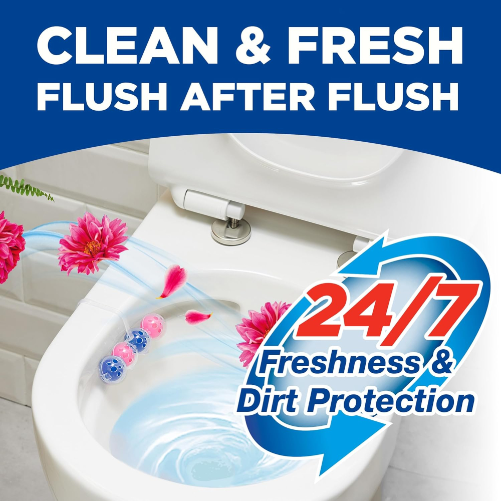 (39 customer reviews)Keep your toilet sparkling clean, hygienic, and fresh with the Bloo Power Active Toilet Rim Block Fresh Flowers, a pack of 3 blocks delivering up to 720 powerful flushes. This all-in-one rim block provides cleaning foam, dirt protection, and superior anti-limescale defense with an invigorating floral scent.