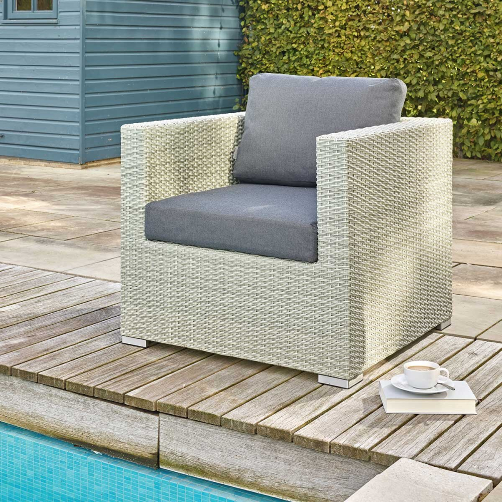 - Weather-resistant Cloud Rattan over robust, rust-proof aluminum frame.
