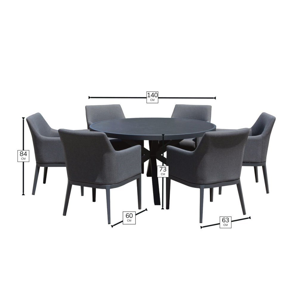 - Set Includes: 1 x Dining Table (W 140 x D 140 cm) and 6 x Dining Chairs.