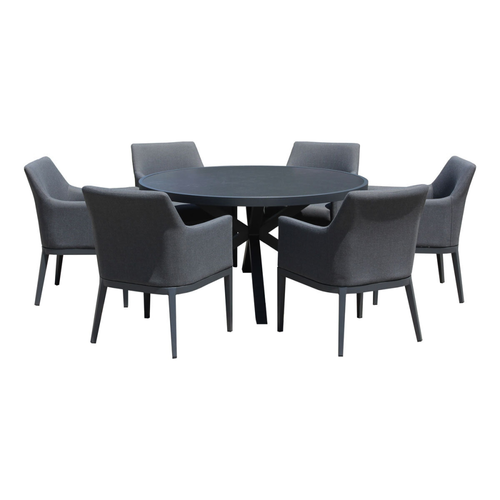 Transform your garden or patio into a stunning outdoor dining experience with the Bramblecrest St Lucia 7 Piece Upholstered Dining Set. This premium ensemble combines sophisticated design with ultimate weather resistance, making it the perfect centerpiece for al fresco entertaining. The set includes a spacious 140×140 cm dining table featuring a modern aluminium star-frame base and a frost-resistant ceramic glass top. Six incredibly comfortable dining chairs are upholstered in high-tech, quick-dry outdoor fabric and sit on rust-resistant, lightweight aluminium frames. Designed for year-round use and minimal maintenance, the St Lucia set offers superior comfort and lasting quality, ensuring you spend less time on upkeep and more time enjoying your outdoor space.