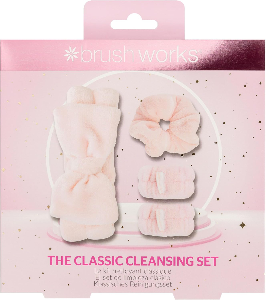 Upgrade your daily beauty regimen with the best-selling Brushworks The Classic Cleansing Set. This essential 3-piece kit is designed to deliver a gentle, spa-quality experience while eliminating water drips and messy residue. Featuring an ultra-soft microfibre makeup headband, innovative wrist wash bands, and a coordinating scrunchie, this set ensures your hair stays perfectly dry, your countertops remain spotless, and your focus stays entirely on flawless skincare. Perfect for face washing, makeup application, masking, and general beauty routines, the Classic Cleansing Set makes self-care simple, effective, and mess-free. Suitable for all skin types and cruelty-free.