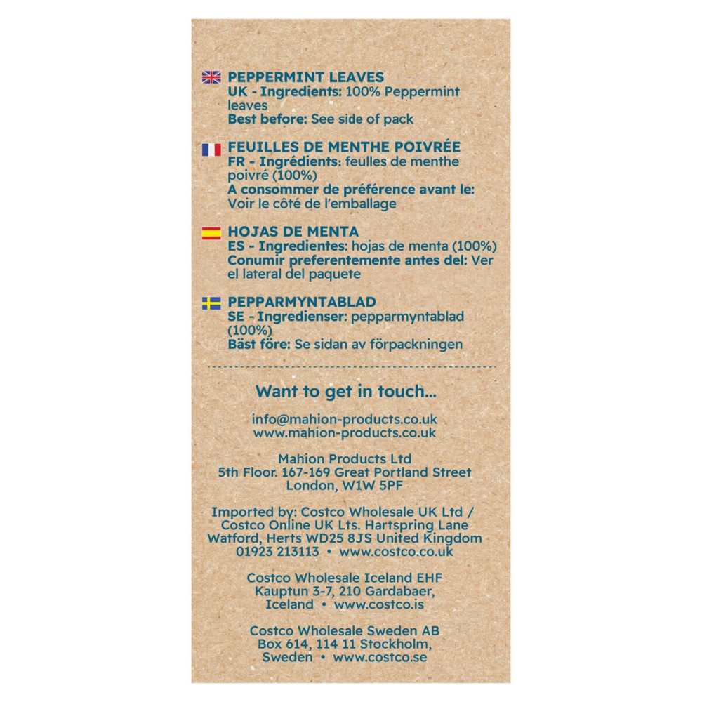 - Ingredients: 100% Peppermint Leaves.