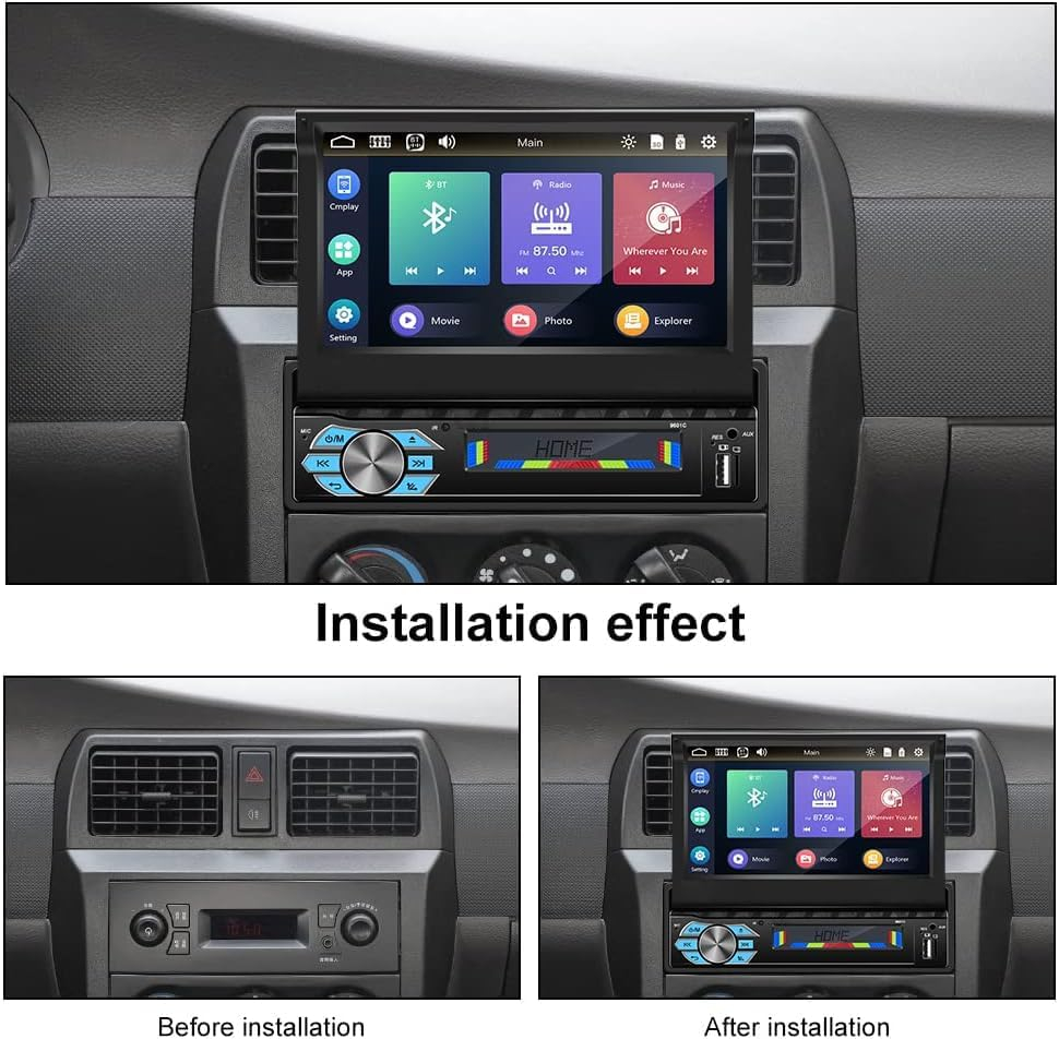 7 reviews for CAMECHO 1 DIN CarPlay Android Auto Electric Flip Out Car Stereo, 7 Inch Single Din Touch Screen Radio,Support Bluetooth Handsfree FM TF/USB/AUX/Mirror link+Rear View Camera