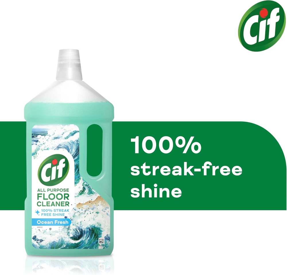 Instantly transform your home with the powerful Cif Ocean Floor Cleaner. Specially formulated to tackle the toughest messes, this 950 ml liquid solution effortlessly cuts through stubborn dirt and grime on high-traffic floor surfaces. Whether you’re cleaning linoleum, restoring the brilliance of vinyl, or rejuvenating ceramic tiles, our rinse-free formula guarantees a sparkling, residue-free shine without the hassle. Infused with a fresh, invigorating aqua scent, this all-purpose cleaner doesn’t just clean—it fills your entire home with a clean, uplifting fragrance, revealing the true beauty in every corner.