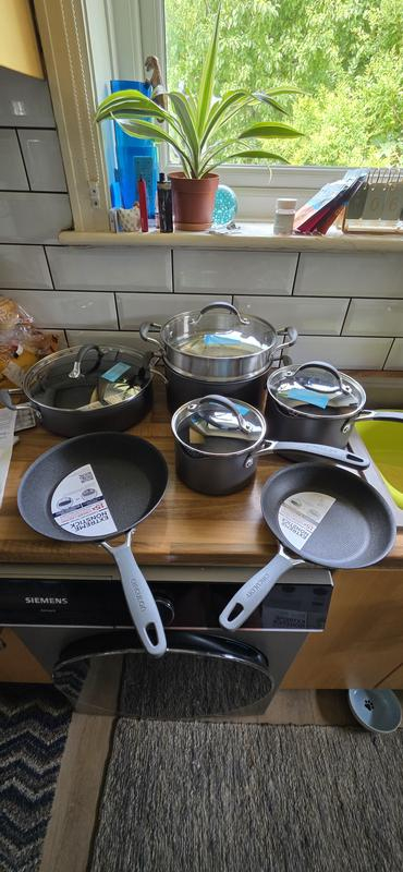 This is an amazing set at a great price. Much more expensive on other sites like John Lewis. I just moved into a new flat, and needed a better set of pans than the ones that it came with. These are perfect. We’re very happy with the results we get from them. The last ones weren’t non-stick, and it makes a world of difference.