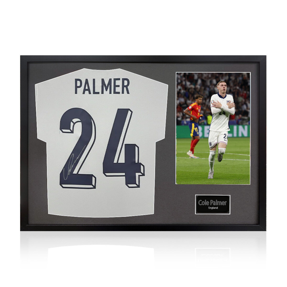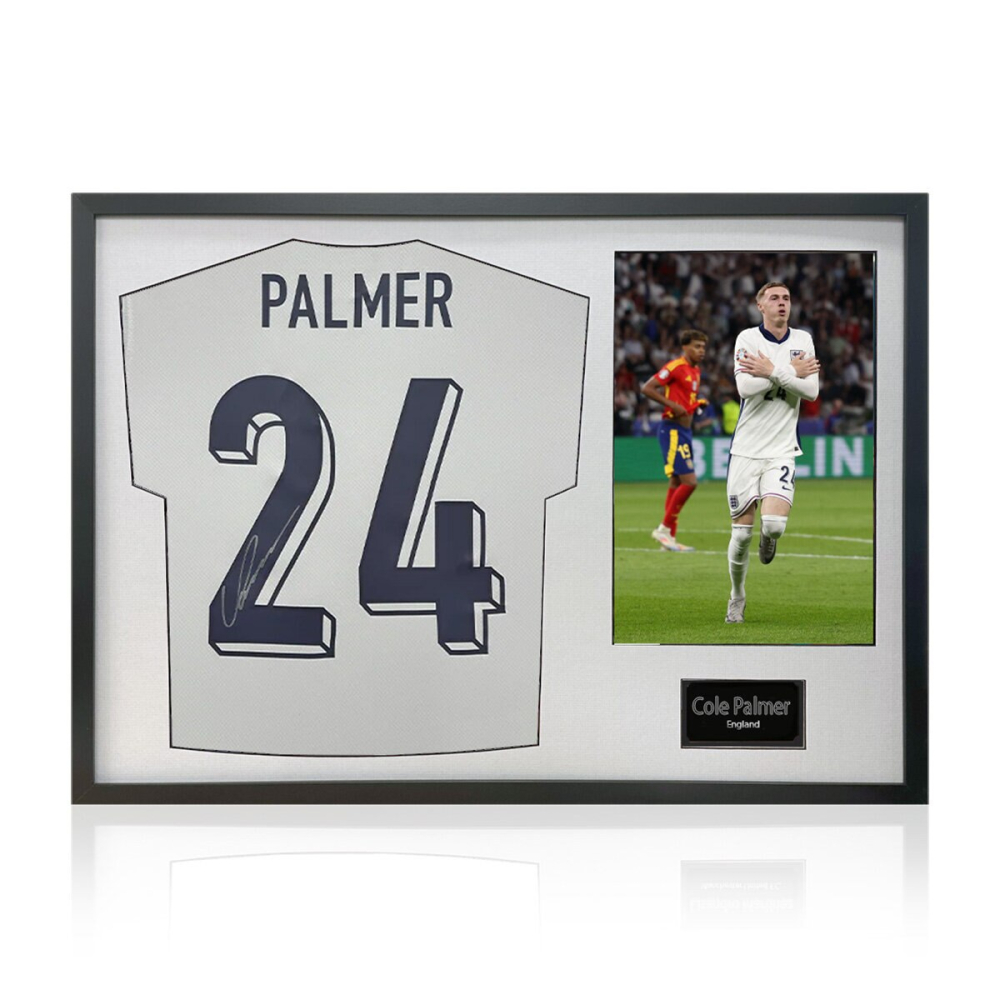 Own an invaluable piece of football history with this exclusive Cole Palmer Signed Framed England Football Shirt. Perfect for dedicated collectors and passionate England fans, this premium display item features a genuine, hand-signed shirt from the rising star, Cole Palmer. The shirt is professionally mounted and presented in a sleek, high-quality frame with a clean white mount, designed to make the signature and shirt pop. Included is a high-resolution photograph of the player, completing this museum-quality piece. This framed shirt is a spectacular centerpiece for any home, office, or collection, offering verifiable authenticity and a lasting tribute to one of England’s most exciting talents. Don’t miss your chance to secure this investment-grade collectible today.