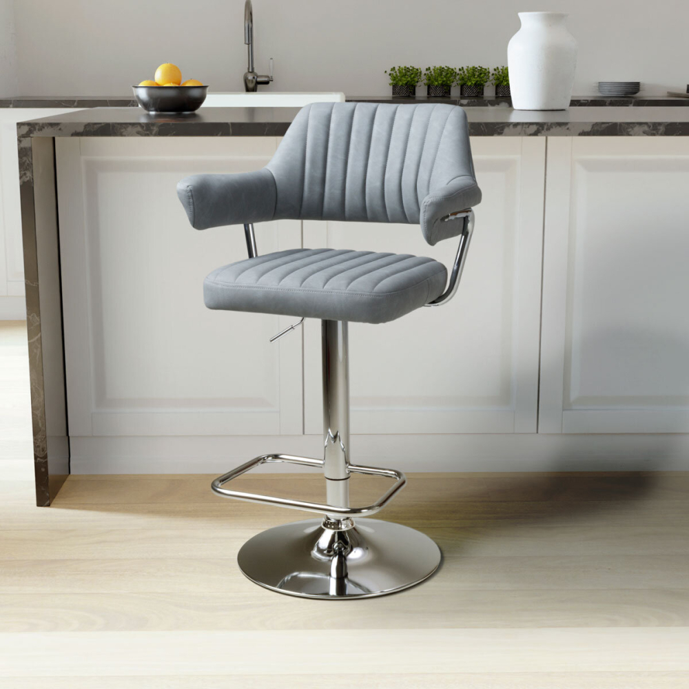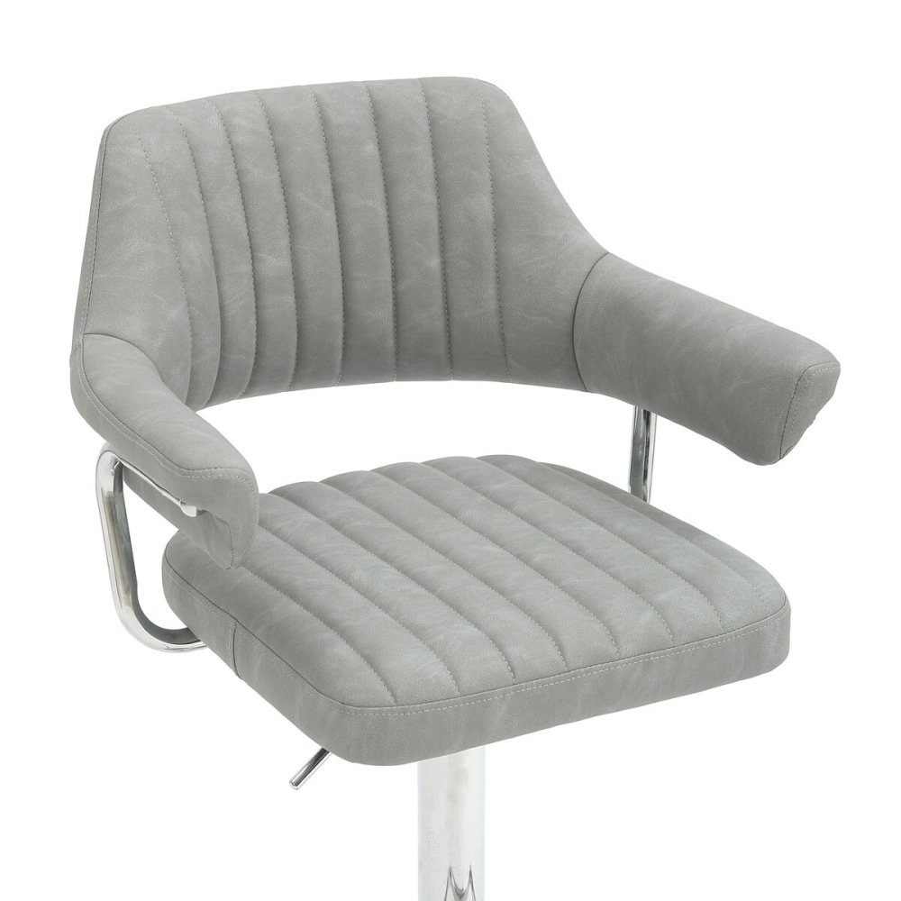 Instantly modernize your kitchen or home bar with the Cortez Light Grey Faux Leather Bar Stool 2 Pack, a premium seating solution engineered for style, comfort, and durability. These adjustable swivel stools feature easy-to-clean light grey faux leather upholstery and a polished chrome base for a sophisticated, contemporary aesthetic. The gas lift mechanism and supportive footrest ensure a perfect, comfortable seating experience for any counter height.