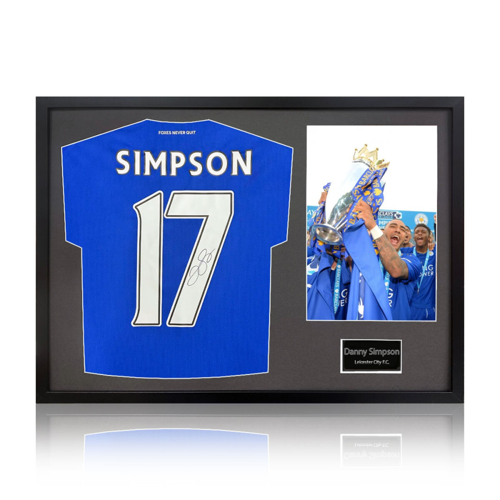 Secure Your Piece of Football History: Danny Simpson Signed, Framed Leicester City Shirt with Photo & Premium White Mount