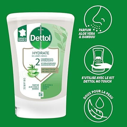 Stock Up & Save: 10-Pack Dettol No-Touch Liquid Hand Soap Refills (250 ml) with Soothing Aloe Vera. Maximize hygiene and ensure your family’s hands stay protected and nourished with this exceptional value multipack. Designed exclusively for use with the Dettol No-Touch Dispenser, these 250 ml refills provide a powerful, cleansing action that effectively targets germs while remaining gentle on all skin types. The calming Aloe Vera fragrance leaves hands feeling soft, moisturized, and refreshed, making handwashing an enjoyable routine for both adults and children. Embrace the ultimate defense against infections with Dettol’s proven formula, ensuring cleanliness and protection for your entire household.