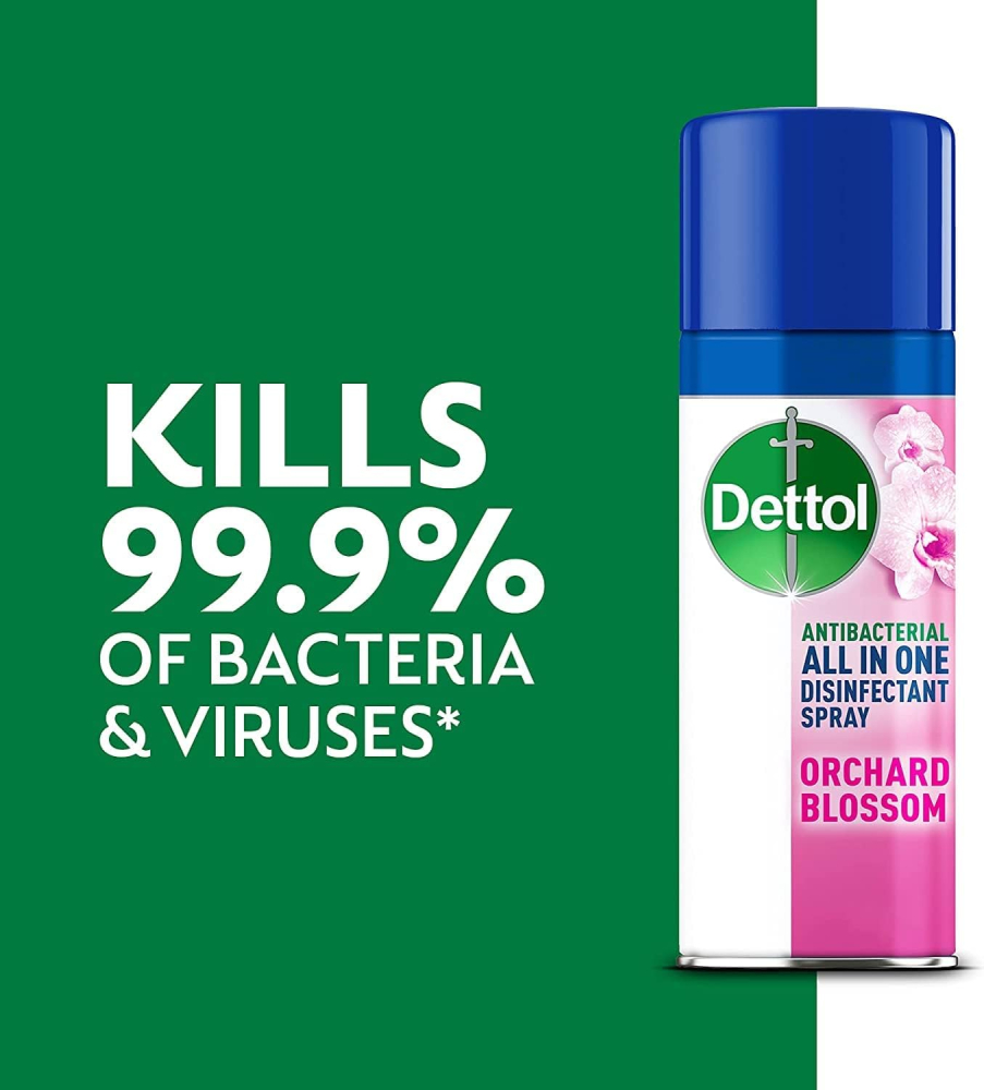 24 reviews for Dettol All-in-One Disinfectant Spray, Antibacterial Disinfectant Spray, Orchard Blossom, Pack of 6 x 400 ml