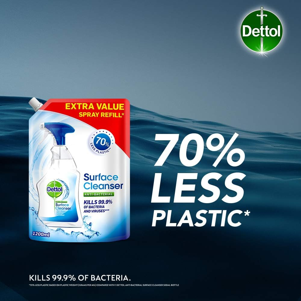 Ultimate Clean: Dettol Anti-Bacterial Surface Cleanser Spray Refill, 1.2 Litre – Eco-Friendly, Powerful Disinfection for Home & Kitchen