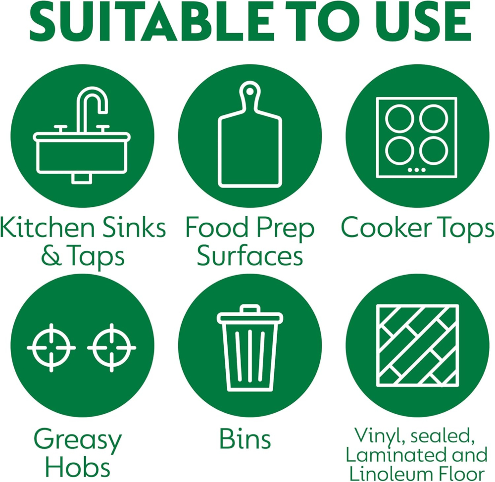 - Non-bleach, non-taint, and odourless for safe use on food prep areas and baby equipment.