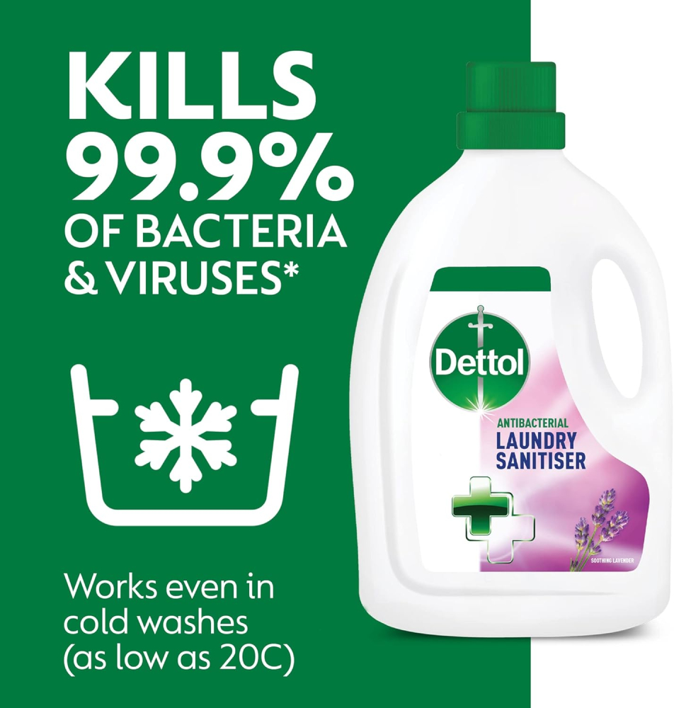 16 reviews for Dettol Antibacterial Laundry Sanitiser, Lavender and Sensitive Fragrance Free Cleanser Additive Multipack, 25 Washes, 2x 1.5L, Pack of 2.