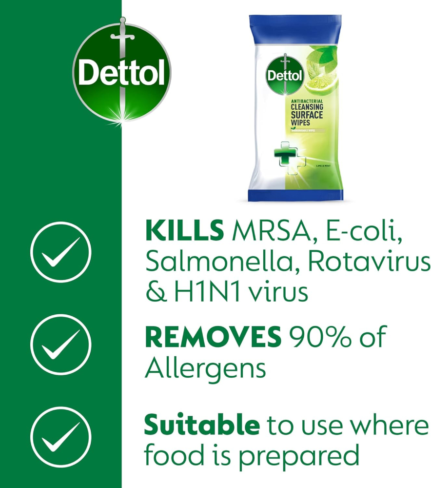 32 reviews for Dettol Antibacterial Lime & Mint Cleaning Wipes – 126 Count | Germ Protection, Fresh Scent, Multi-Surface Use, Convenient for Home, Office, Travel, Hygiene Essentials