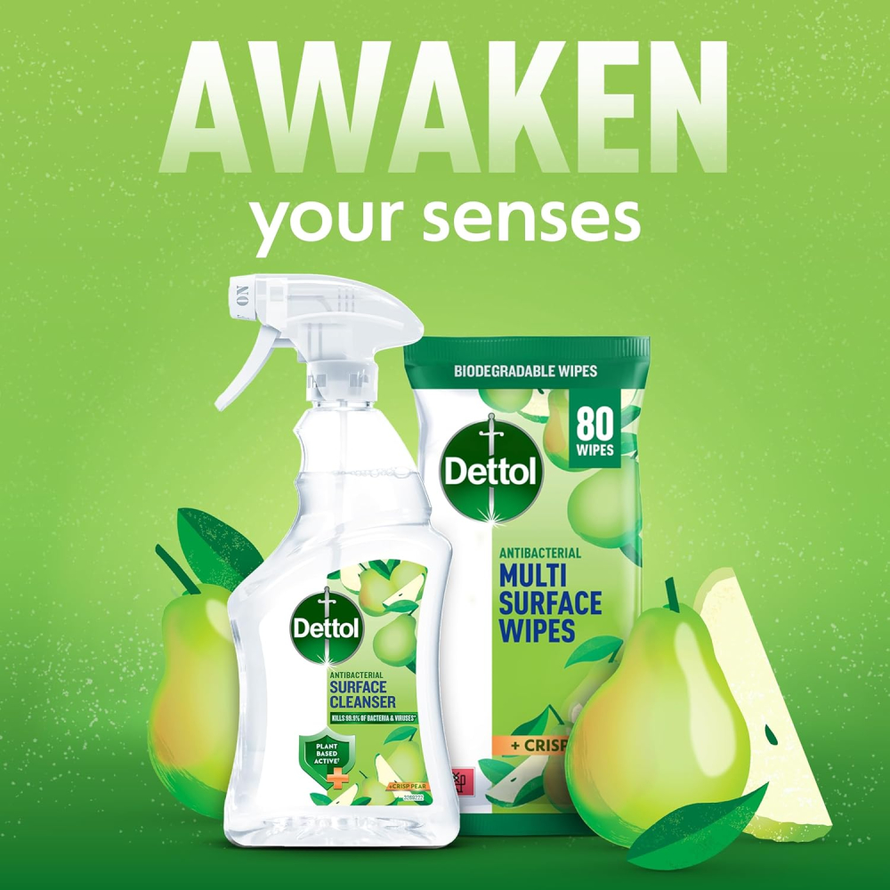 Ultimate Cleanliness: Dettol Crisp Pear Antibacterial Multi-Surface Wipes (350 Count) – Plant-Based, Biodegradable Disinfectant
