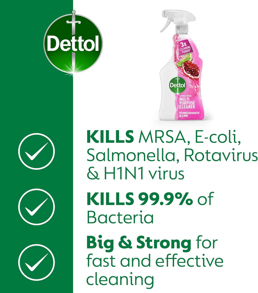 Transform your cleaning routine with the Dettol Antibacterial Multipurpose Cleaning Spray, now available in a cost-effective pack of three 1 Litre bottles. This essential kitchen and bathroom disinfectant is meticulously engineered to provide 3x cleaning power, effortlessly tackling stubborn kitchen grease, baked-on food, and bathroom grime. Beyond surface-level cleaning, Dettol’s clinically proven formula destroys 99.9% of harmful bacteria, including E. Coli, Salmonella, and MRSA, ensuring a hygienic and safe home environment. Infused with a luxurious Pomegranate and Lime Burst fragrance, this powerful spray leaves your surfaces spotless, smelling fresh, and protected against germs. Perfect for everyday quick clean-ups or deep disinfection, Dettol provides peace of mind and brilliant results across multiple surfaces, from sealed wood to linoleum.