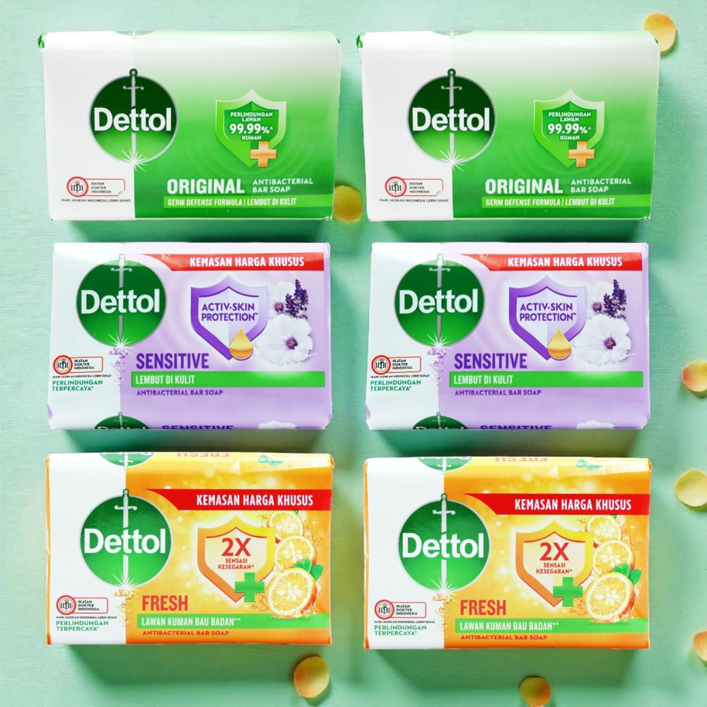 Ultimate Family Protection: Dettol Antibacterial Soap Bundle (6 x 100g Bars) – Original, Sensitive & Fresh – Complete Germ Defense & Skin Care