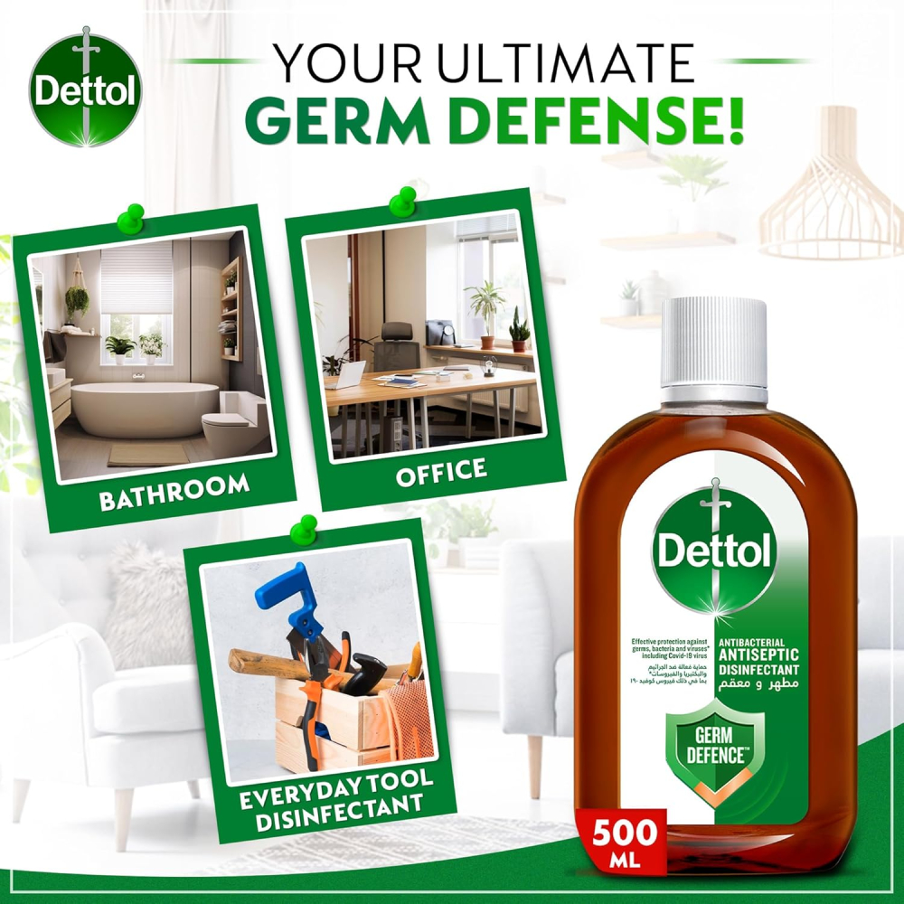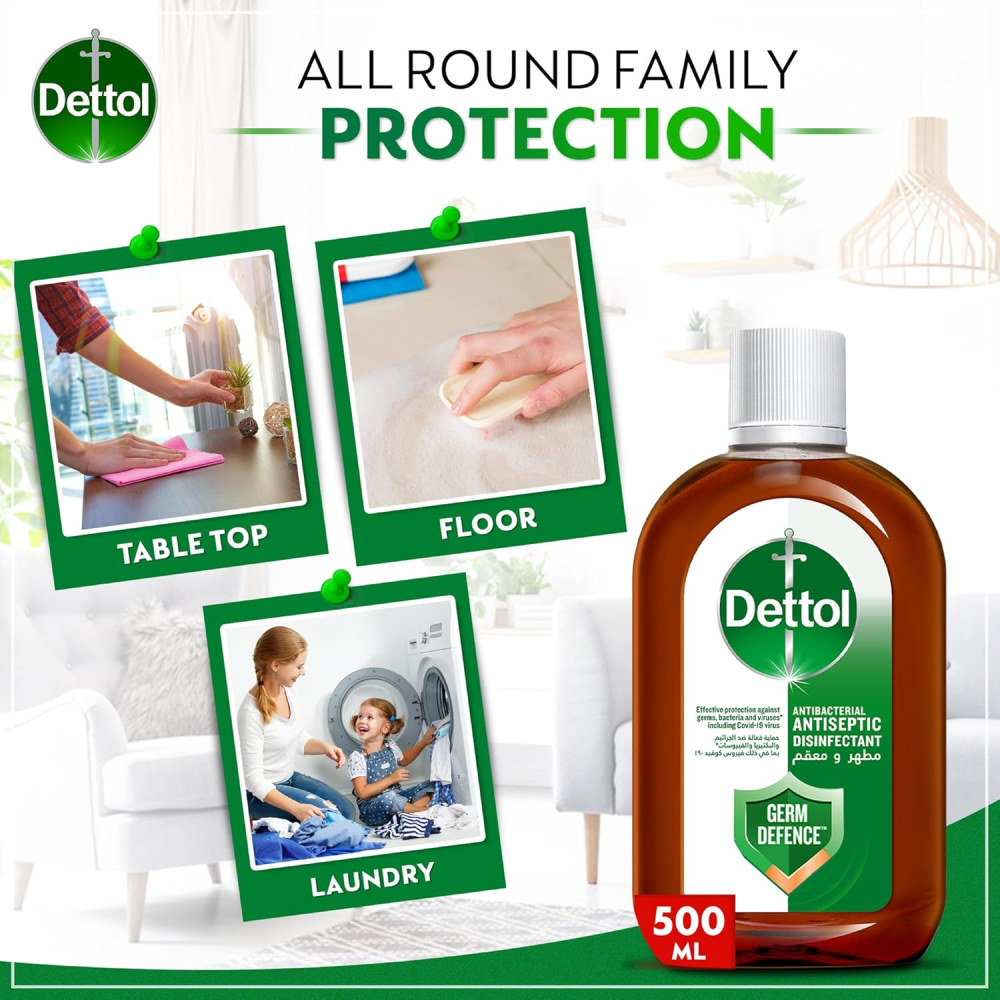 Dettol Antiseptic Disinfectant 500ml is the globally trusted solution for total home and family germ defense. This powerful, concentrated liquid is clinically proven to kill 99.9% of bacteria and viruses, providing essential, hospital-grade protection for first aid, personal hygiene, and versatile household cleaning.