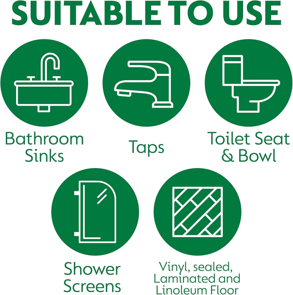 • Versatile use on bathroom sinks, taps, toilets, shower screens, vinyl, and sealed floors.