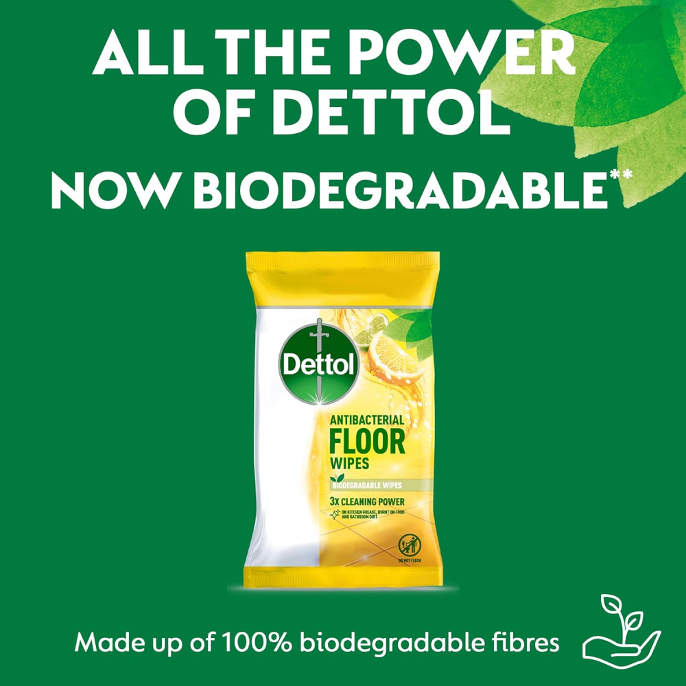Dettol, Floor Cleaner, Antibacterial, Large Wipes, Citrus, 150 Wipes Total (25 x 6pck) Disinfectant, Home Hygiene, Biodegradable, Kills 99.9 Percent of Germs