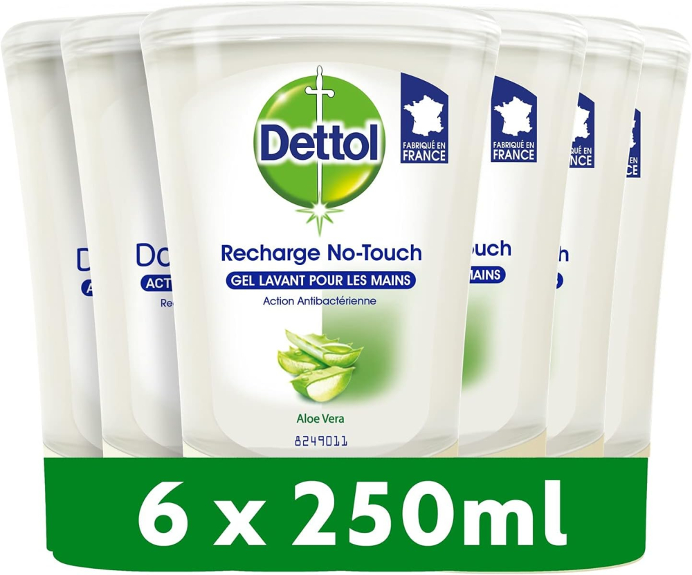 J’ai acheté et testé le produit « DETTOL Lot de 6 Recharges de 250 ml Savon No Touch Aloe Vera & Bambou ».✅ point positif : produit conforme à la descriptionLot de 6 recharges Detoll anti bactérien et hydrant à l’aloe vera.J’utilise depuis nombreux années cette marque, et j’en suis satisfaitCette formule-là mousse est nettoie correctement une fois rincé le rendu est parfait.⚠️ point à améliorer / que j’aime moins : pas trouvé !!➡️ conclusion : Je recommande 5 ⭐️
