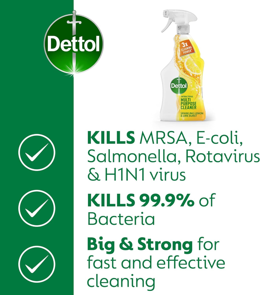 Unleash the Ultimate Cleaning Power: Dettol Power and Fresh Citrus Multi-Purpose Cleaner (1 Litre). This professional-grade, all-purpose cleaning spray is meticulously formulated to tackle the toughest household dirt while eliminating 99.9% of common bacteria. Experience the triple action formula that cuts through kitchen grease, lifts burnt-on food, and obliterates bathroom grime with ease. Beyond its powerful disinfection capabilities, this 1000ml cleaner leaves behind an invigorating Sparkling Lemon & Lime Burst fragrance, transforming your home into a fresh, clean sanctuary. Dettol’s multi-purpose solution ensures a deep, hygienic clean across numerous surfaces, delivering outstanding results for a healthier, brighter home environment.