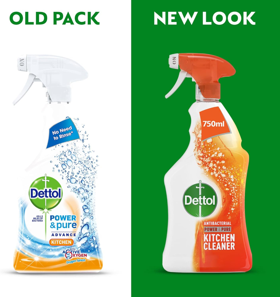 Ultimate Clean Power: Dettol Power and Pure Kitchen Spray (750ml) – Hospital Grade Disinfectant with Active Oxygen for a Residue-Free Shine