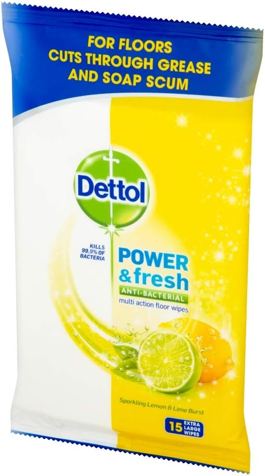 Achieve sparkling, hygienically clean hard floors instantly with Dettol Power Fresh Floor Wipes in a refreshing Citrus scent. This value pack contains 45 powerful, disposable wipes engineered to kill 99.9% of bacteria and provide 3X cleaning power against tough messes like kitchen grease and soap scum.
