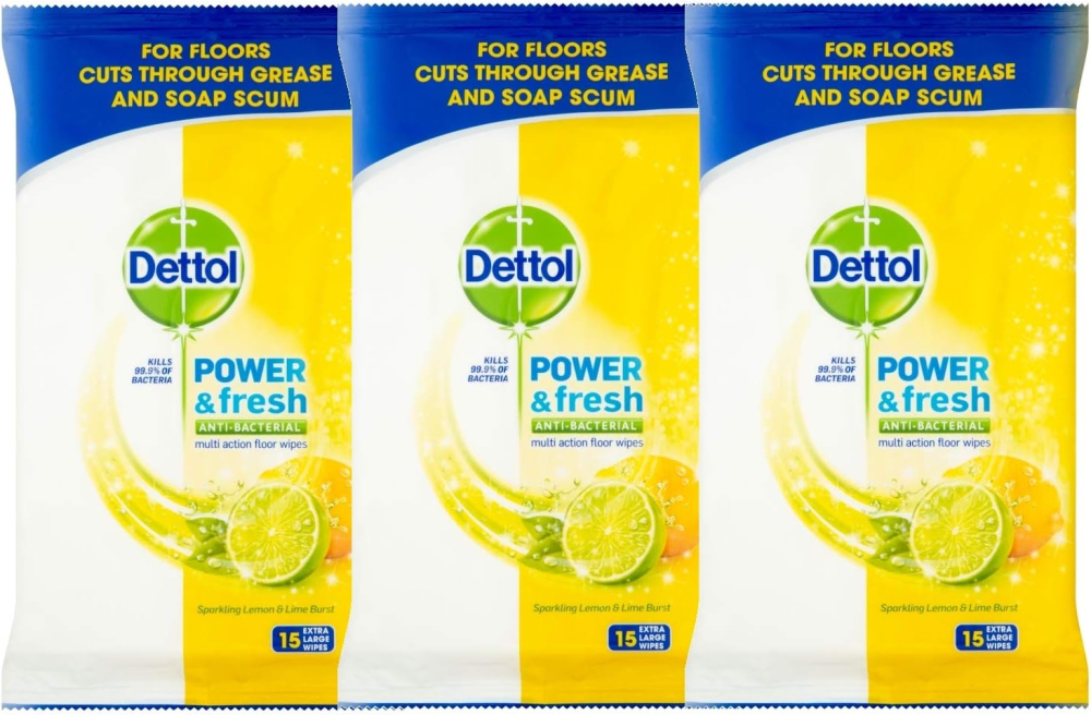 Transform your cleaning routine with the Dettol Power Fresh Floor Wipes, expertly designed to deliver a deep, hygienic clean with minimal effort. This value pack includes three packs of 15 wipes, totaling 45 powerful, citrus-scented floor wipes. Engineered to kill 99.9% of bacteria, including E. coli, these wipes provide 3x cleaning power to effortlessly cut through kitchen grease, burnt-on food, and stubborn bathroom dirt. Enjoy visibly shiny floors and a lasting fresh fragrance, making every clean a refreshing experience. Perfect for fast, effective cleaning on all your hard floor surfaces.