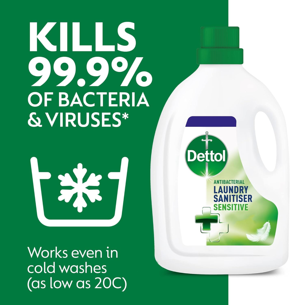 6 reviews for Dettol Sensitive Laundry Cleanser, Antibacterial, Dermatologically Tested 1.5L Pack of 2