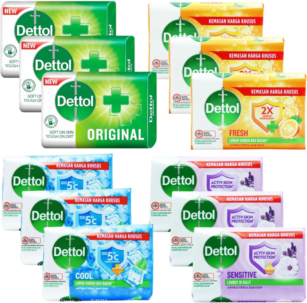 Maximize your family’s hygiene and skin care with the exclusive Dettol 12-Bar Variety Bundle. This incredible value pack includes 12 large 100g soap bars, featuring a mix of Dettol’s most trusted formulations: Original, Sensitive, Cool, and Fresh. Engineered for total body hygiene, these bars deliver Dettol’s proven cleansing power, suitable for everyday use by every member of the household. Whether you need the classic trusted protection of Original, the gentle care of Sensitive, the invigorating sensation of Cool, or the refreshing burst of Fresh, this bundle ensures you always have the right bar on hand. Stock up now on premium quality soap that combines protection, moisturizing benefits, and a choice of revitalizing scents.