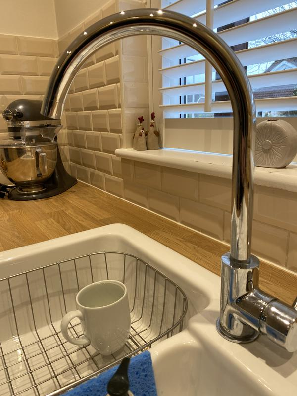 It’s a good quality tap, but, the spout isn’t bent enough so when I swing it to the central small sink the water pours over the floor.
