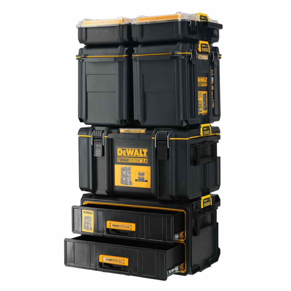 Revolutionize your jobsite efficiency and secure your most valuable tools with the DEWALT TOUGHSYSTEM 2.0 6 Piece Tower. This comprehensive, modular storage solution provides industrial-grade durability and unmatched portability, ensuring every tool is precisely where you need it. Featuring IP65-rated dust and water protection, metal reinforced padlock eyes for maximum security, and easy-to-use auto-stacking latches, this tower is built to withstand the toughest conditions while streamlining your workflow. Invest in the future of organization and professionalism with the ultimate storage system designed for trade professionals.