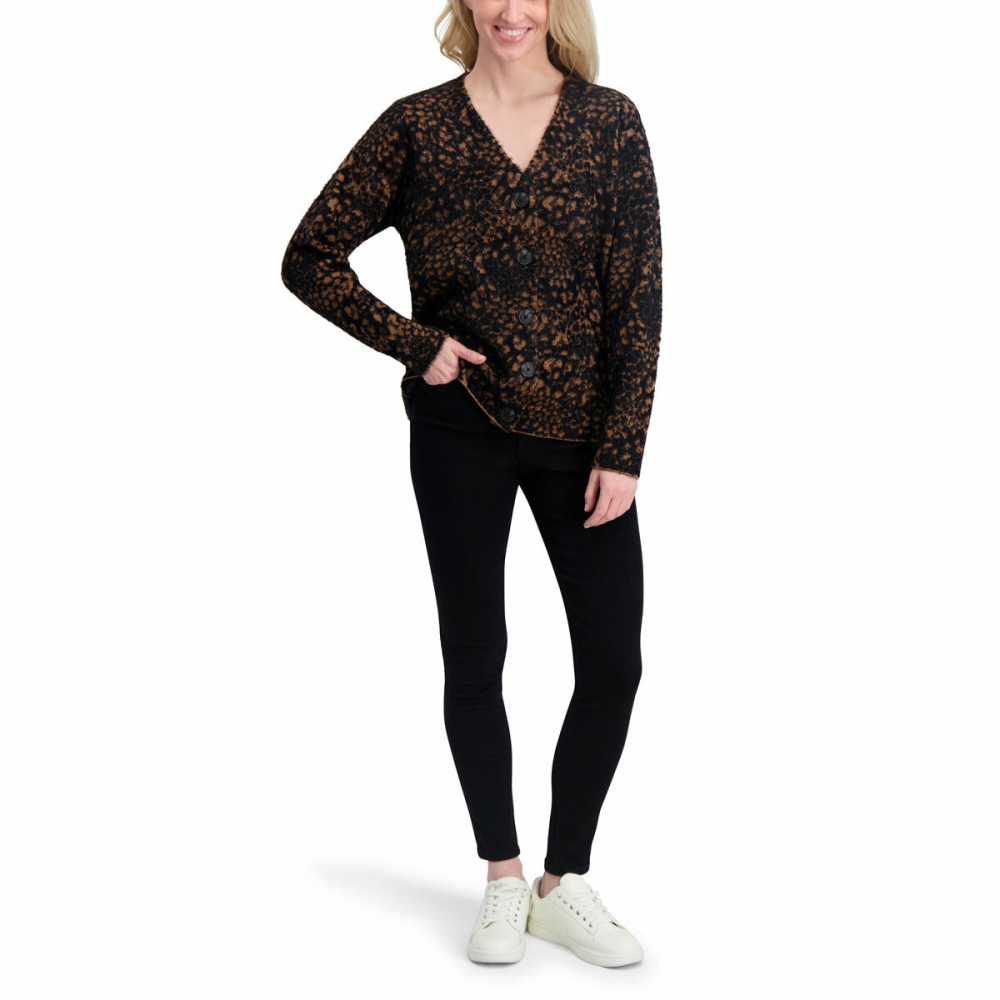 Elevate Your Style: DKNY Ladies Leopard Print Cardigan in Stone – Effortless Luxury & Comfort
