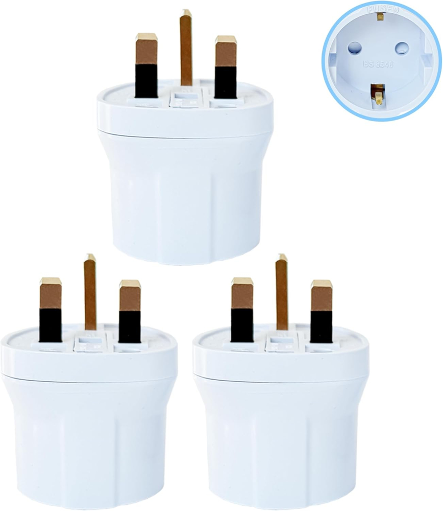 Essential EU to UK Travel Plug Adapter (3-Pack) – BS8546 Certified, 13A Fused for Maximum Safety