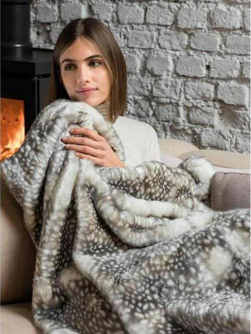 DREAMLAND Hygge Days Faux Fur Heated Throw – Fallow Deer, 160 x 120 cm