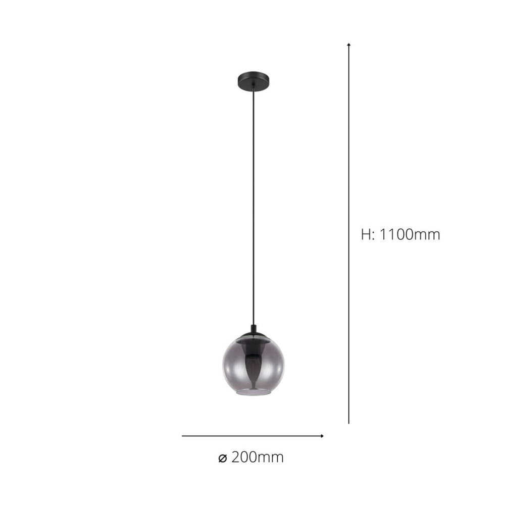 Transform your space with the Eglo Ariscani 1-Light Smoked Glass Ball Pendant, a modern and elegant fixture featuring a mesmerizing black-transparent glass sphere (200mm diameter). This premium light is perfect for adding mid-century sophistication and a warm, inviting glow to your kitchen island, dining room, or living area.