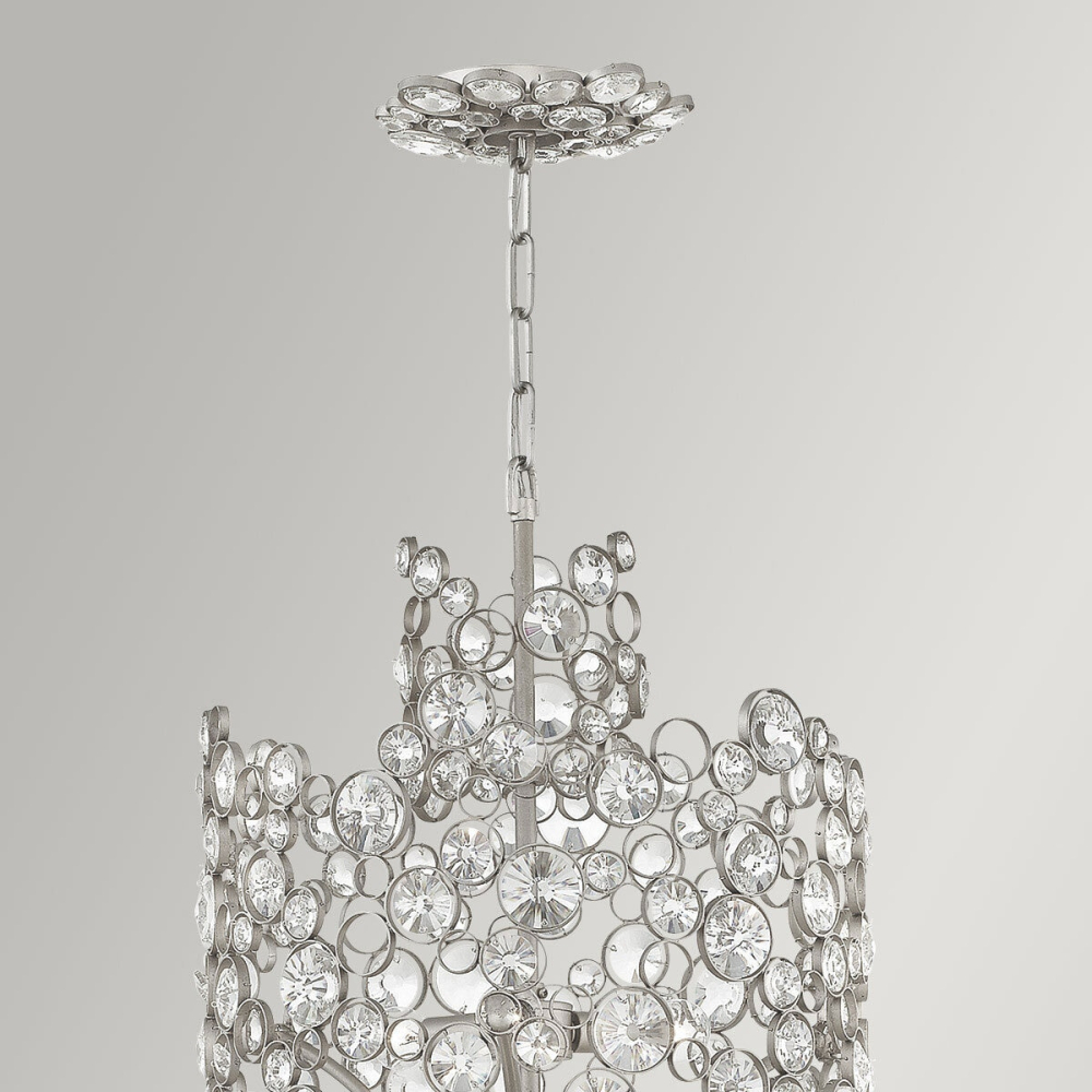 Instantly elevate your entryway or dining room with the majestic Elstead Anya Two Tier Pendant, a stunning statement lighting fixture. Featuring a hand-applied Silver Leaf finish and high-quality clear glass crystals, this pendant offers brilliant illumination and unparalleled elegance for modern or transitional luxury homes.