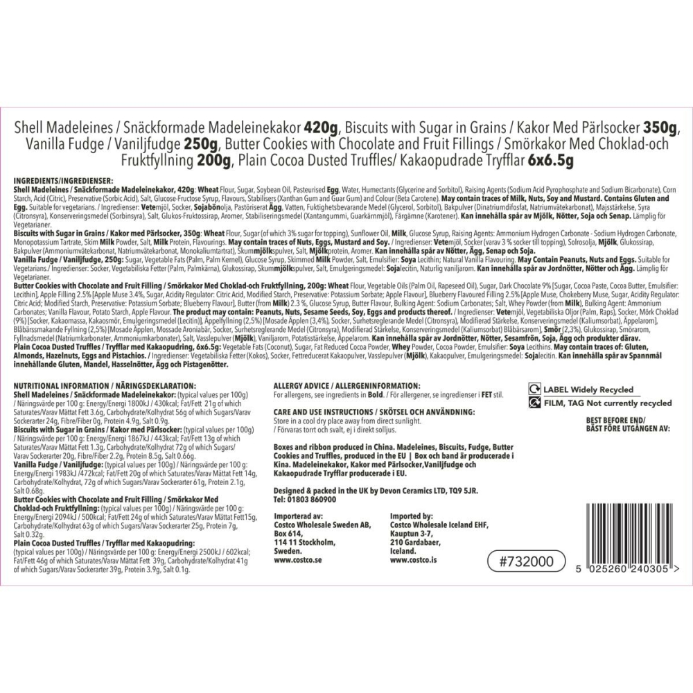 • Contents include: Biscuits made with Cream (350g), Creamy Vanilla Fudge (250g), Lambertz Pfeffernusse (200g), Milk Chocolates with Hazelnut Cream Filling (6x), and Shell Madeleines (420g).