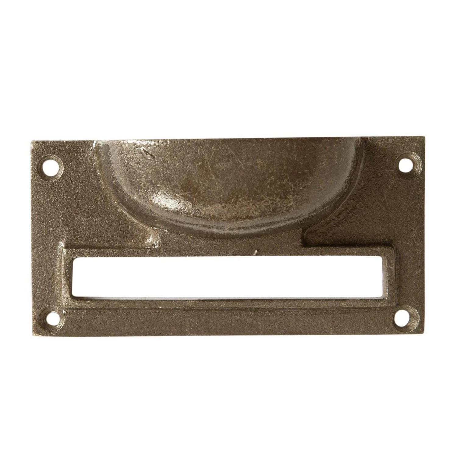 Filing Cabinet Cup Handle with Card Frame Cast Iron Handles 100mm x 50mm Brass