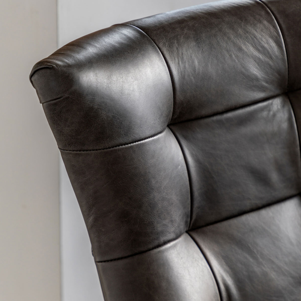 Elevate your home with the premium Gallery Bristol Grey Nubuck Leather Swivel Chair, a luxurious statement piece that merges unparalleled comfort with modern design. Upholstered in genuine, sophisticated grey nubuck leather, this high-back chair features a smooth 360-degree swivel base, making it the perfect ergonomic addition for your office or living room.