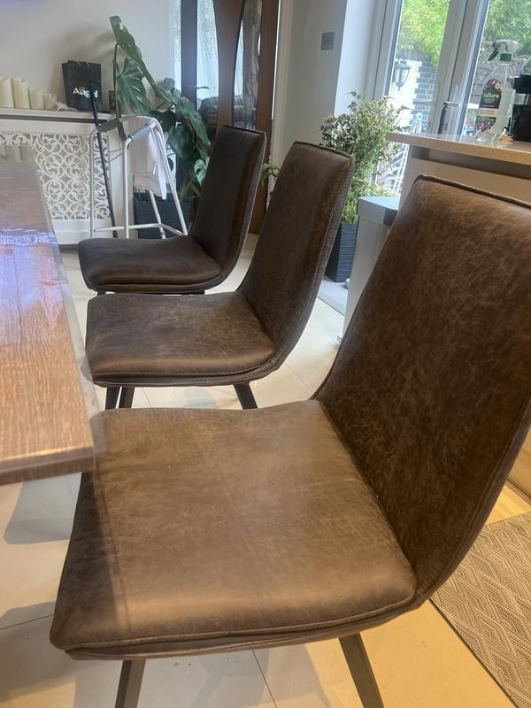 Instantly elevate your dining space with the luxurious yet practical Gallery Hinks Brown Faux Leather Dining Chair set. Sold as a convenient pack of two, these chairs are expertly designed to merge timeless elegance with everyday durability, making them the ideal choice for modern family homes, kitchens, or dining rooms. Featuring a rich, warm brown faux leather upholstery, the Hinks chairs deliver the sophisticated look and supple feel of genuine leather without the high maintenance. The ergonomic design ensures exceptional comfort, while the robust black metal legs provide superior stability and a sleek, contemporary contrast. Upgrade your entertaining area with these high-quality, high-style dining chairs that promise years of enjoyment and easy upkeep.