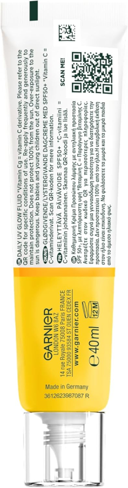 Garnier Vitamin C Daily UV Brightening Fluid Sheer Glow: SPF50+ Protection and Radiance-Boosting Skincare