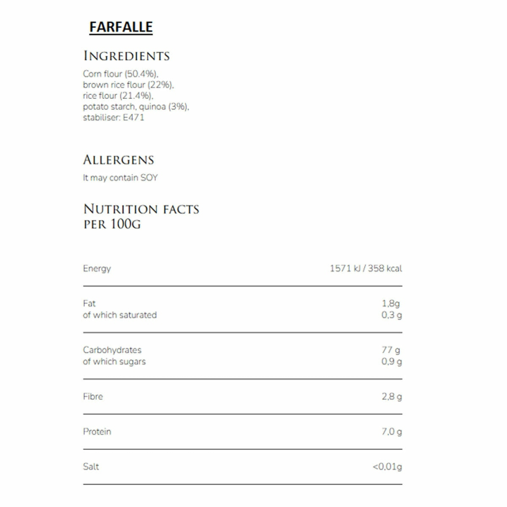 - Main Ingredients: Corn Flour, Brown Rice Flour, Quinoa Flour.