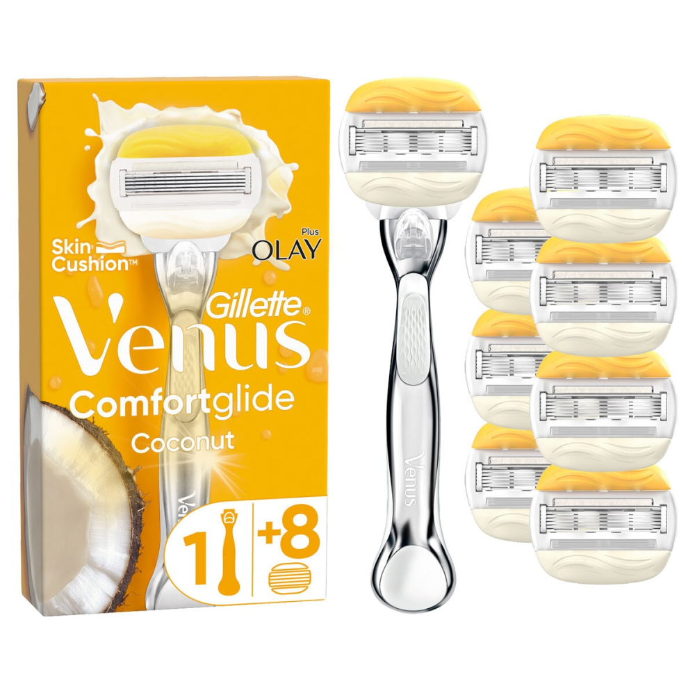 - Includes 8 Venus Comfortglide replacement blade cartridges for months of smooth skin.