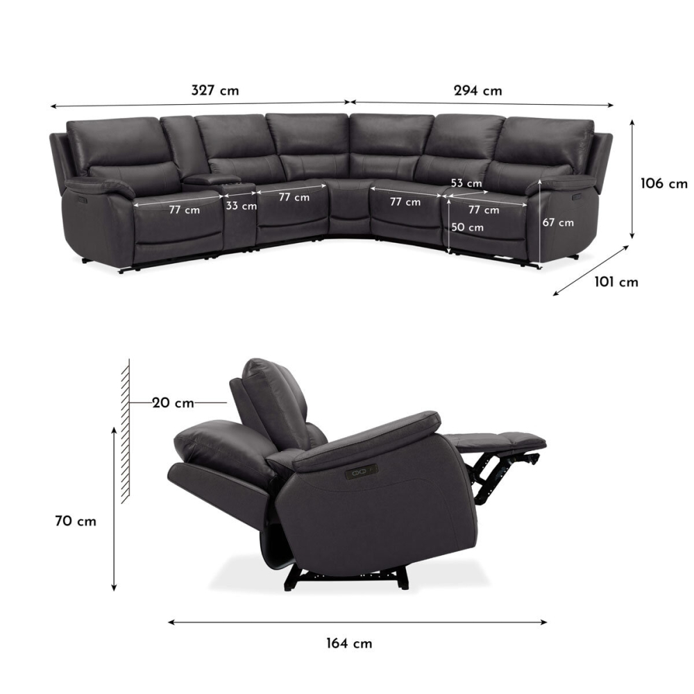 - Luxurious Dark Grey Top Grain Leather on all seating surfaces for premium comfort and longevity.