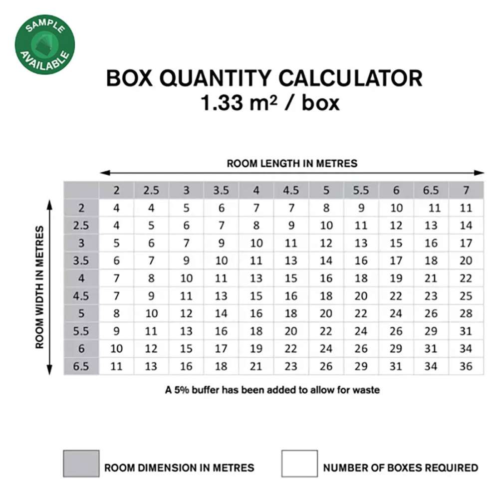 - Coverage per pack: 1.33 m² (or approximately 14.3 sq ft).