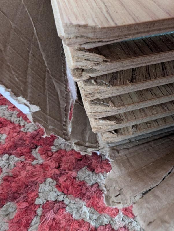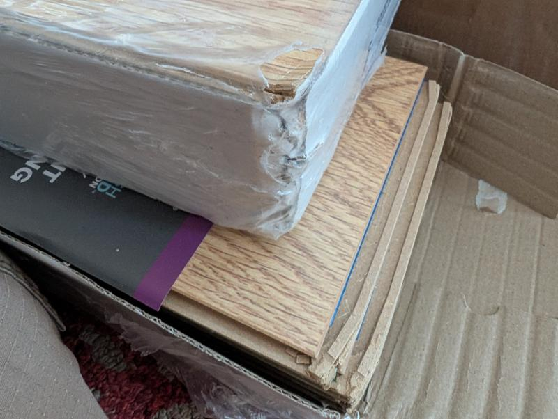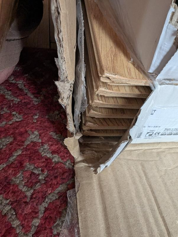 Great flooring, but despite being delivered on a pallet and securely shrink wrapped, 3 of the 12 boxes were damaged with damaged planks inside.
