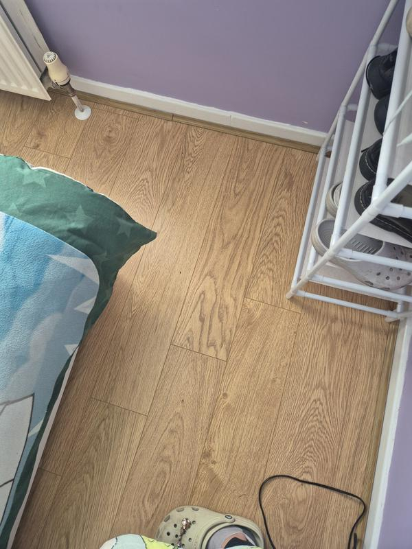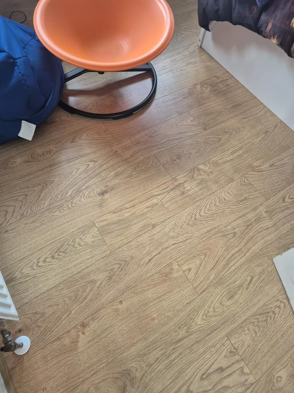 Good quality laminate , hard, strong, but should be more in a pack as less in the pack design on the laminate same style on every 6 plank, l found it hard to click each other that make finish longer time and can’t be placed one by one that need to be connect all on one line then try to push in is hard work, l bought on b&q called dolce it was so much easier to connect each other as simple one by one, but this one is very good quality strong hard wearing but diffucult to build.