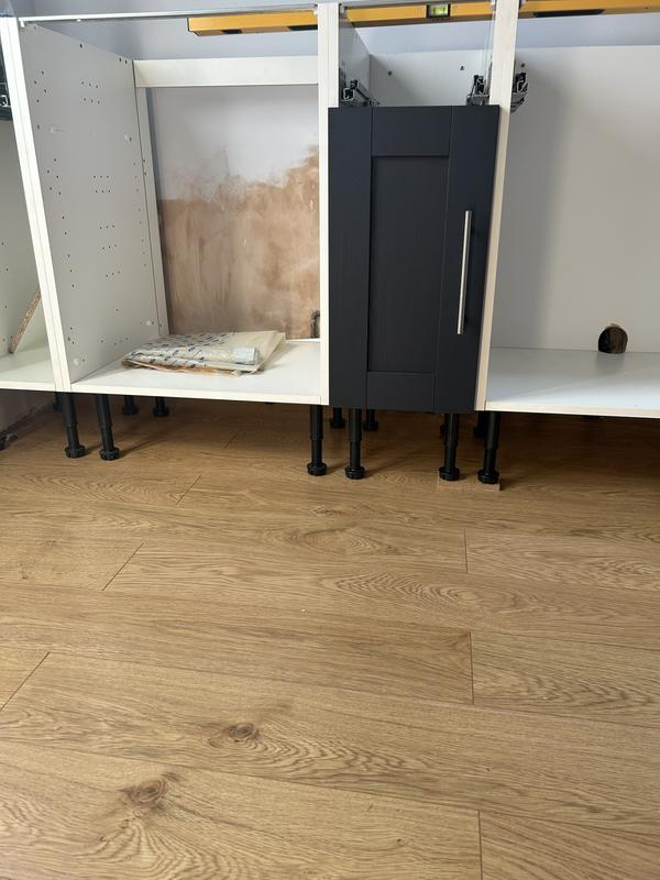 Easy to saw to length and just requires a small expansion gap on the edges as I laid the whole floor before starting to fit my cupboards.